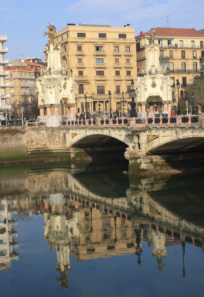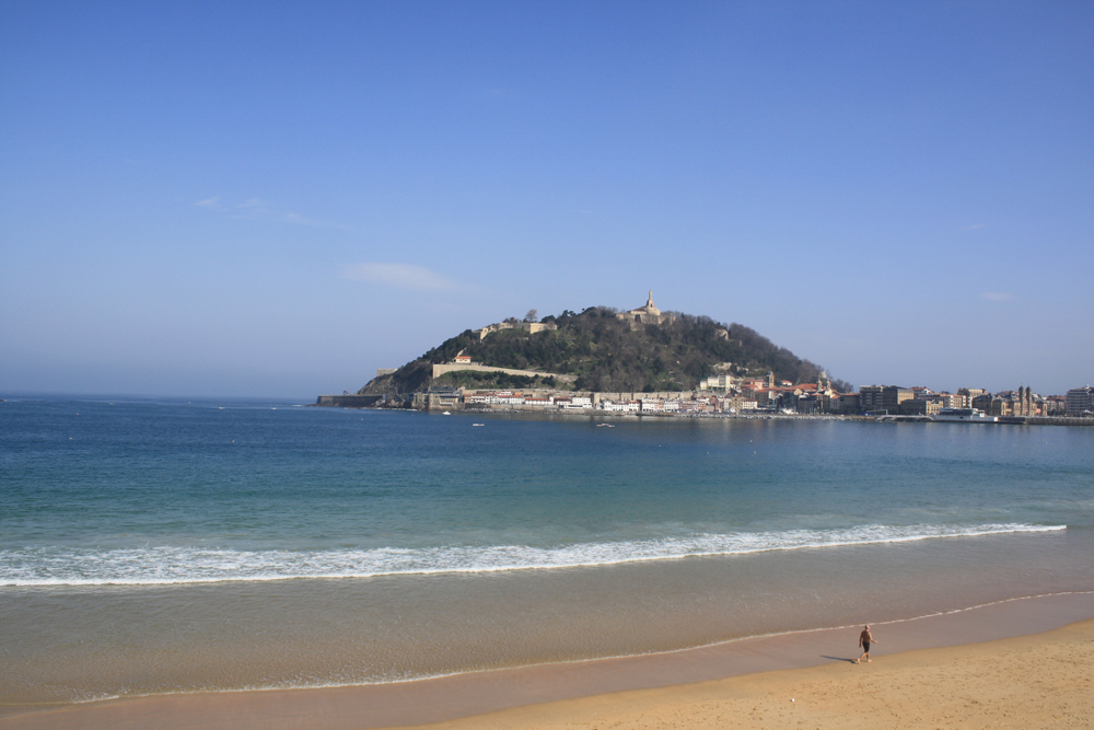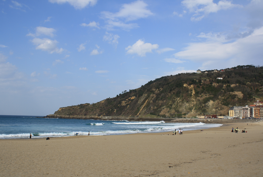 This past weekend, while half of the students in my program were in Granada (I’m going this upcoming weekend!), and my roommate was in Paris, I took off on my own for the north: to Bilbao and San Sebastián. After deciding that Vueling is definitely my favourite low-cost airline (they let you have a carry-on and a purse! Anyone who has ever flown Ryanair knows what a big deal this is), I took a bus to San Sebastián and I immediately fell in love with the city! The walk from the bus station to the hostel was along a river and crossed a bridge just before it reached the ocean. The hostel I stayed in, Olga’s Place (highly recommended!) was just a block from the ocean. After I checked in, I decided to take a walk along the beach. La Playa de la Concha stretches in a curve around the edge of the city. Even though it was foggy and not particularly warm (a nice change from the heat in Sevilla, I must admit), that didn’t stop people from going to the beach. I saw so many people walking, playing with their dogs, even kayaking and surfing in the (freezing) water.