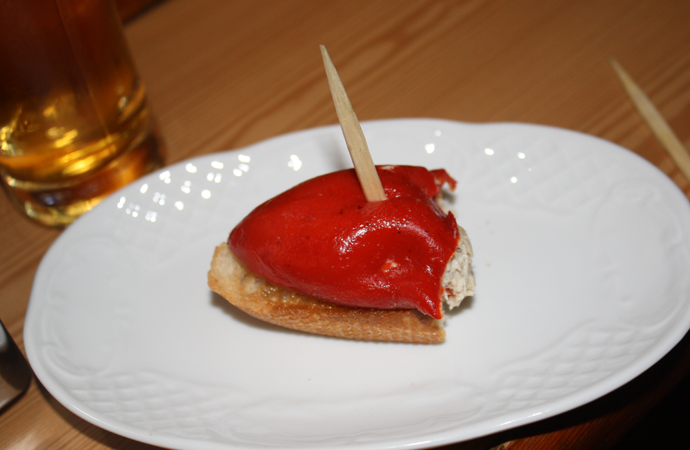 I spent the rest of the day walking on or around the beach. When I got back to my hostel, I found I had a third roommate for the second night in the hostel. Another American, but instead of being a student studying abroad, he was living in Madrid and teaching English to Spanish students. The three of us decided to go out for pintxos, or tapas, together. Unfortunately, it was raining that evening, but we didn’t let that stop us.
