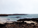 I just got back to a weekend trip to Connemara with Rosemary and Medb to stay with Rosemary’s family, which was lovely and relaxing and everything I could ask for sandwiched between two very busy weeks (the ROPES editorial staff had a six-hour meeting on Thursday, to name just one of the many things going on last week, and my MA thesis proposal is due at the end of next week, so I’m not the least-stressed-out person around). We spent most of Saturday walking across beach after beach to Omey Island where Rosemary, who studied archaeology, told us all about Teampaill Feichin, the shell middens, and the other items of historical interest. Despite the wind and rain, it was a beautiful trek. Here are some photos—though my iPhone hardly does the landscape justice: