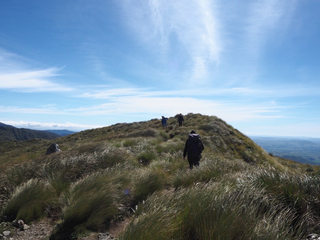 The next morning our group woke at various times between 5:30am and 7am, and we were packed up and ready to go by 9. This was important because our second day of hiking was much longer than the first; around 18 kilometres, so at least twice as long as Day One. However, the views made up for it with the first few hours of the day a trek back up to the summit and then along the ridgeline, above the trees and nearly level with the clouds.