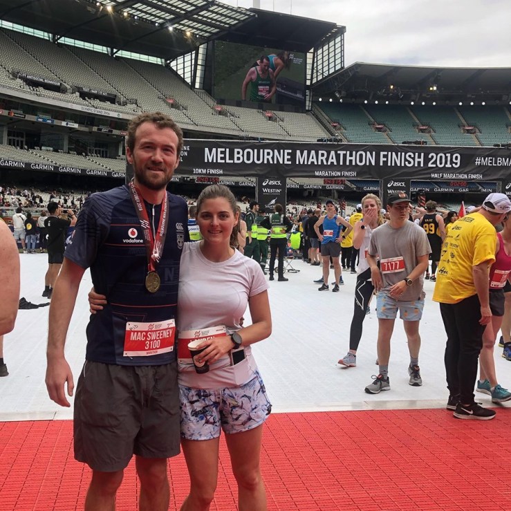 At this point, I can run a half marathon without thinking too much about it. This isn’t a brag, it’s just practice; if someone told me to go out and run a half-marathon I could do it (not, like, now, I just ran a marathon, but in general). However, there’s no way I would’ve been able to complete a full marathon without the aid stations, the cheering crowds (especially my friends who came out to watch and offer moral support 36km in, after one of the route’s only hills), the high fives and gummies and funny signs, the thrill of running in to the MCG to finish the race. The volunteers were amazing, it’s always cool to be part of a race that closes down some of the biggest roads in a city to get to run on them, and having a crew of other runners around you is always inspiring when you feel like you can’t take another step.