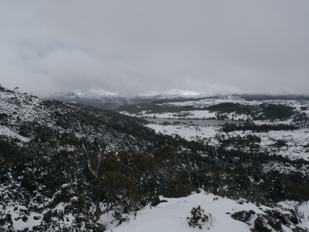 I know that the weather in Tasmania, especially in its many wilderness areas, is famously unpredictable, but when I saw “snow” on the forecast for Steve and my recent hike on the Overland Track that runs between Cradle Mountain and Lake St. Clair in the island’s centre, I imagined we might be encountering a few flurries, maybe even walking through a dusting of settled snow along the path.