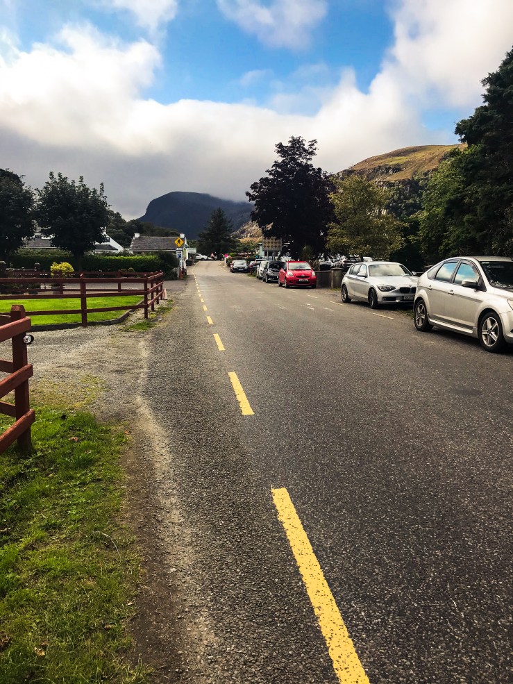 Most likely, you’ll start off at Kate Kearney’s Cottage, a traditional pub and café at the very start of the road up the gap. Here you’ll find parking—although not enough if you go on a sunny Sunday morning like we did; we had to park along the side of the road—and plenty of jarveys with jaunting carts (horse-drawn carts) offering their services. However, the trailhead to Strickeen is only a ten-minute walk from Kate Kearney’s so there’s no need. There is also technically parking at the base of Strickeen itself, but the road is narrow and there’s only room for a few cars to park anyway, so just don’t worry about it.