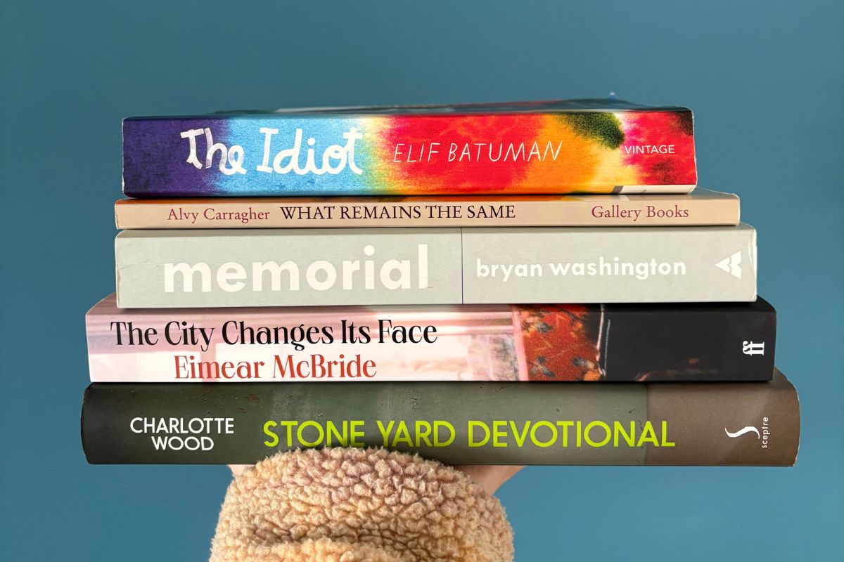 Unlike Kennys, I don’t tend to buy from Charlie Byrne’s online, so it would’ve been rude not to pick up a whole stack of books when I was there on Saturday, right? I bought three secondhand novels — Memorial by Bryan Washington, The Idiot by Elif Bautman, and Stone Yard Devotional by Charlotte Wood — Eimear McBride’s new novel The City Changes its Face, and a book of poetry by Alvy Carragher, who was doing her MA in Writing when I was doing mine in Publishing and whose poetry blew us away when she submitted it to Ropes so I’m delighted she went on to publish several collections.