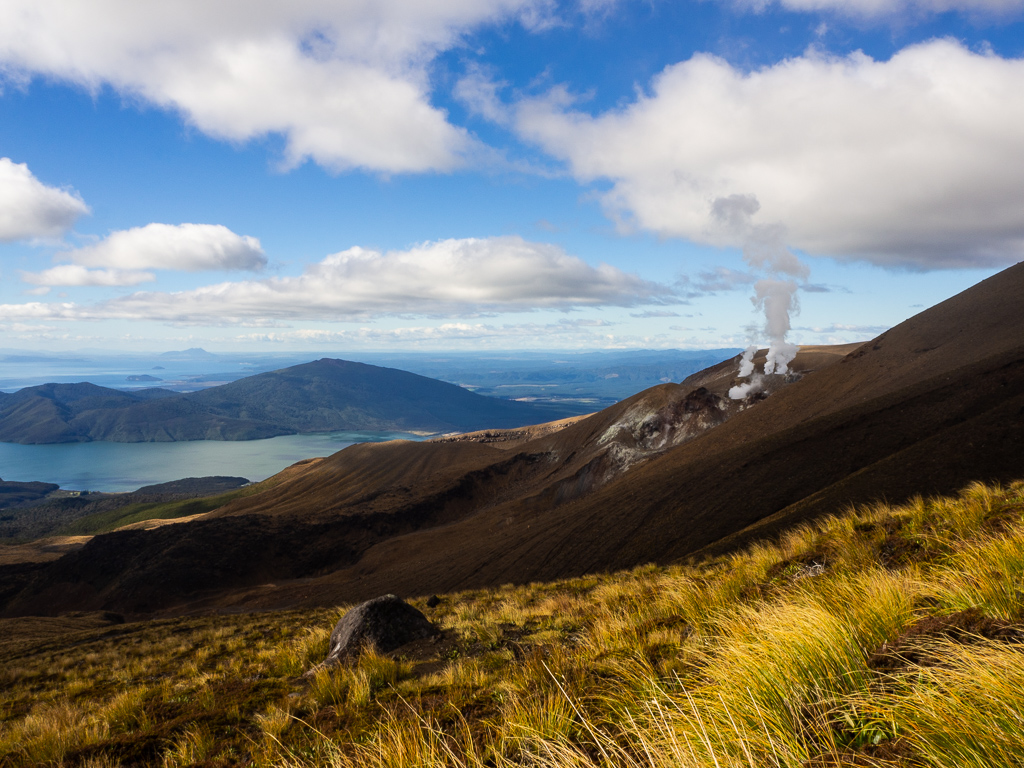 Earlier this week Steve and I headed a few hours north of Wellington to Tongariro to do the Tongariro alpine crossing. One of the highlights of the North Island, this 19-kilometre hike is known for some pretty epic natural formations including turquoise-tinted geothermal pools and the intimidating Mount Ngauruhoe—or as you might know it, Mount Doom. It’s also known for its changeable weather, especially this late in the season. When we arrived at our hostel, we were told by the owner that the shuttle hadn’t run for a few days, but that the forecast was good for the following day and she was optimistic we would be able to do the hike. The next morning, under an overcast sky, the shuttle operator told us that he would take us up but that he recommended we wait for a less ominous day. We decided to go anyway and luckily—after two hours of rain—the skies miraculously cleared up and we were rewarded with incredible views.